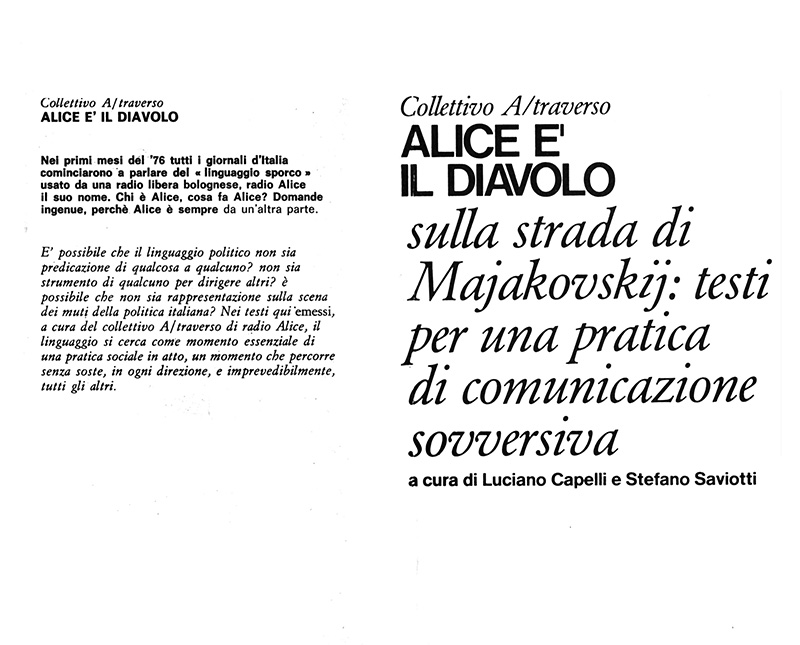 Ai sostenitori in regalo il pdf di "Alice è il diavolo" scritto dal collettivo A/Traverso e ormai esaurito da tempo in libreria.